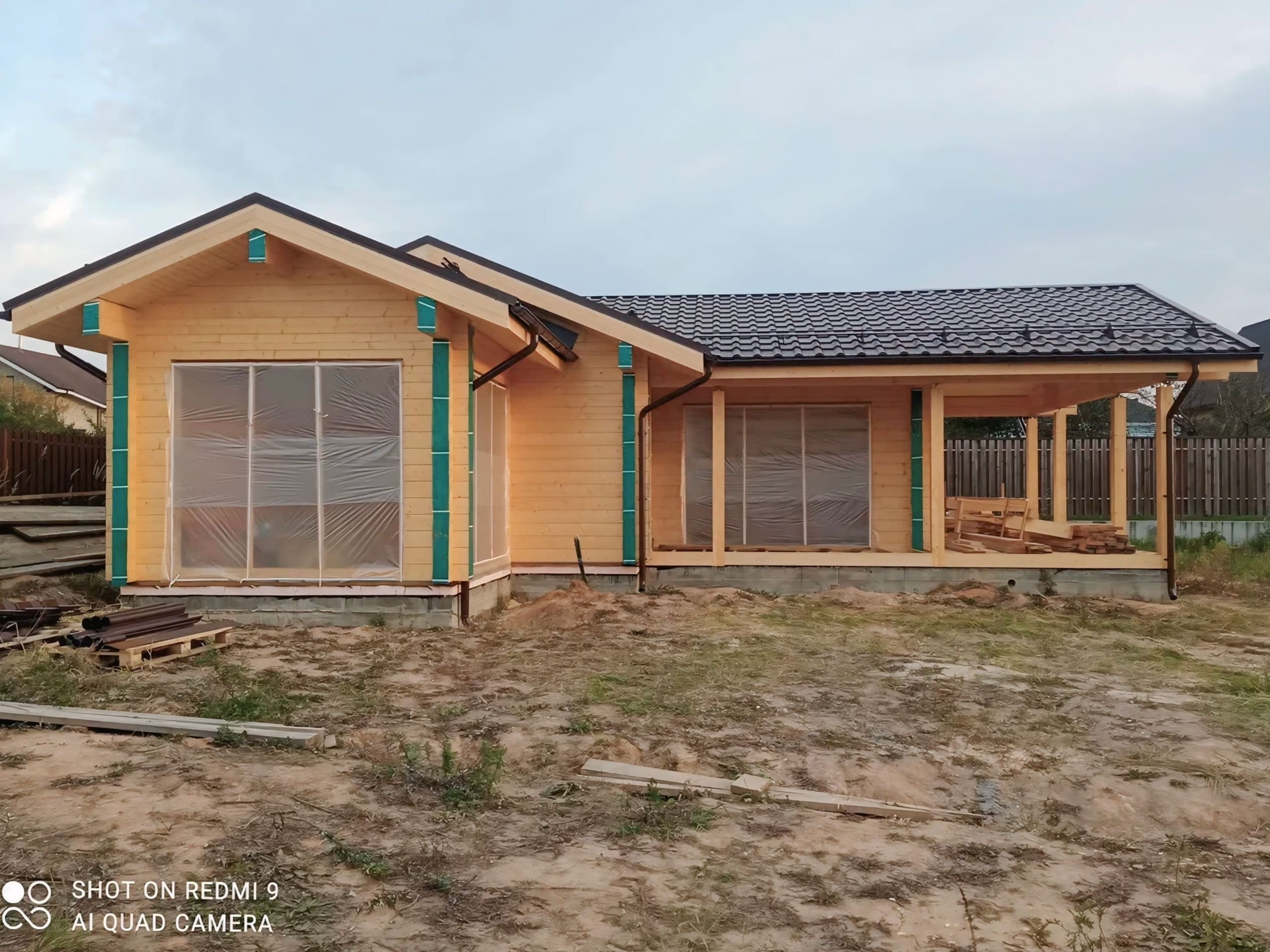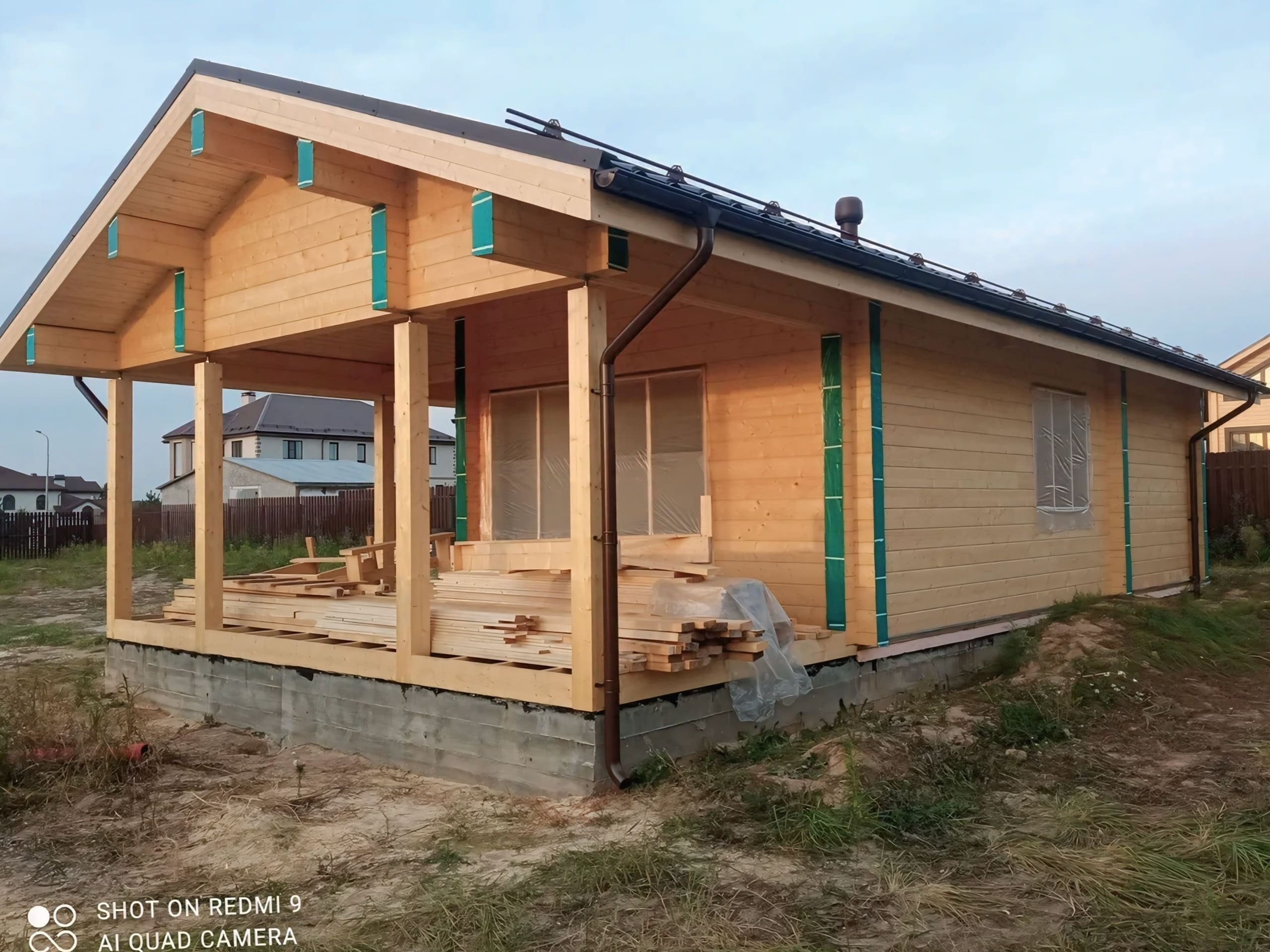 Строительные работы выполнены в полном объеме, за исключением дополнительных услуг (электрика, сан. техника, разводка в кухне и сан. узлах, отопление, разводка батарей по всему дому, электрокотел, бойлер, антифриз).