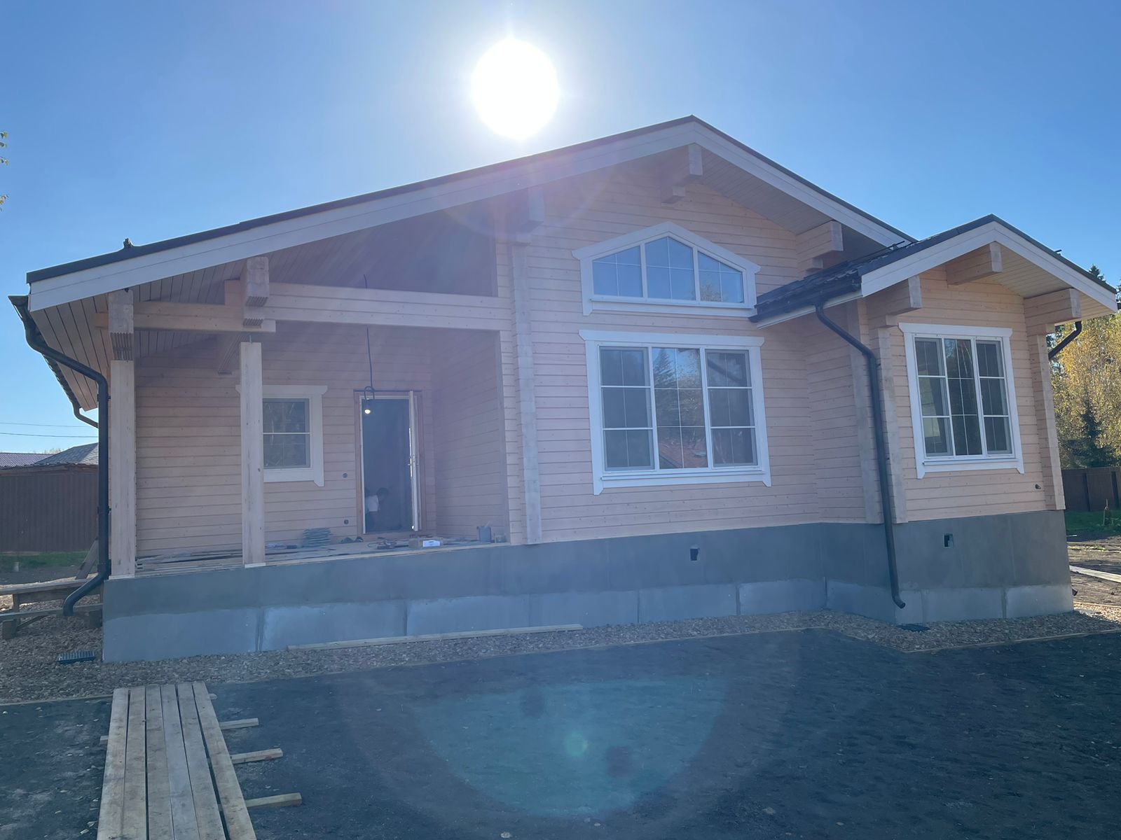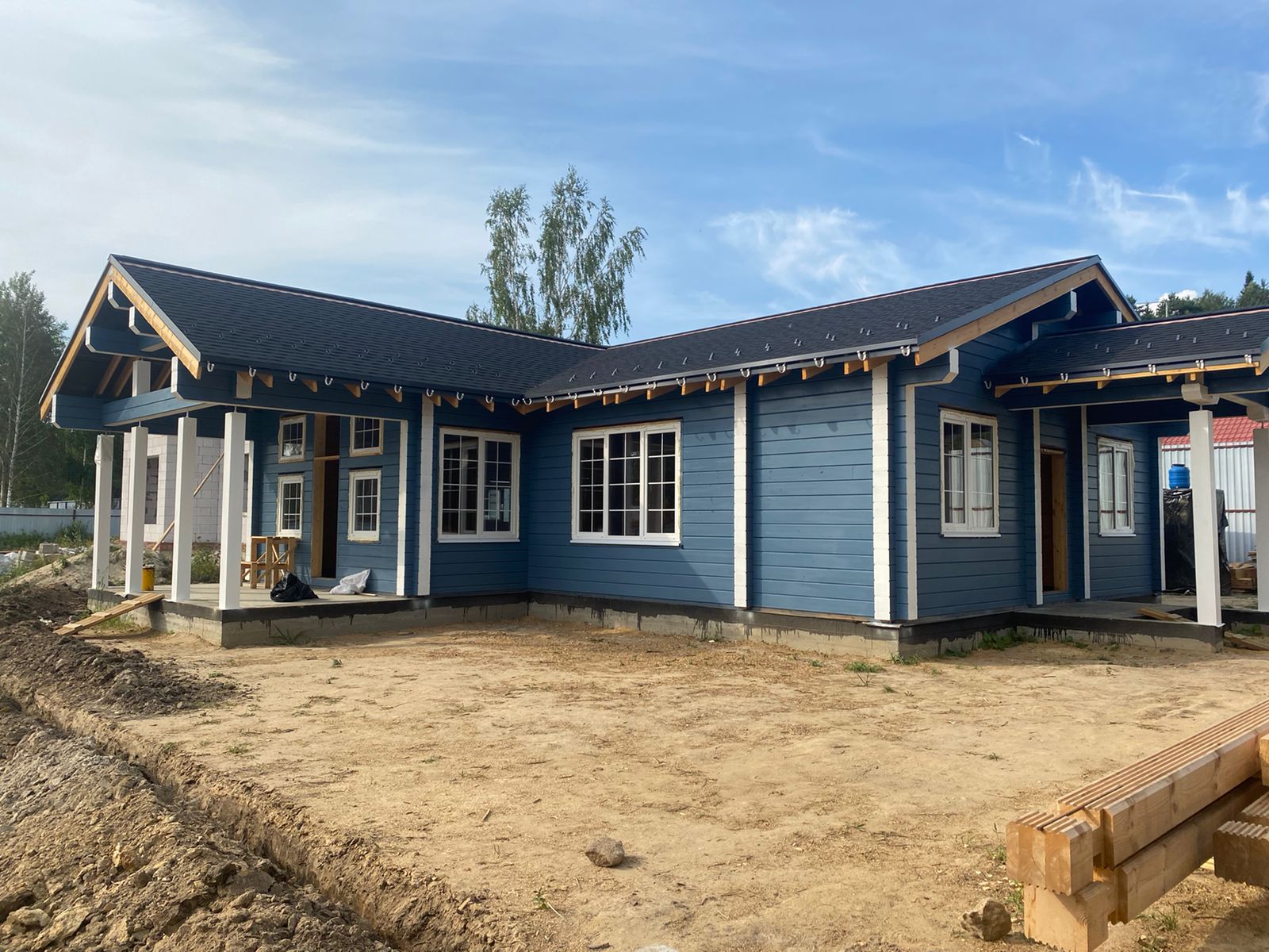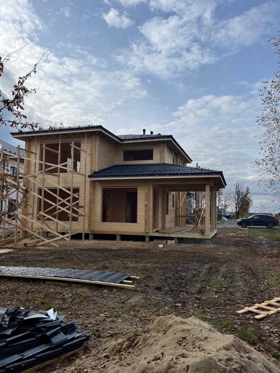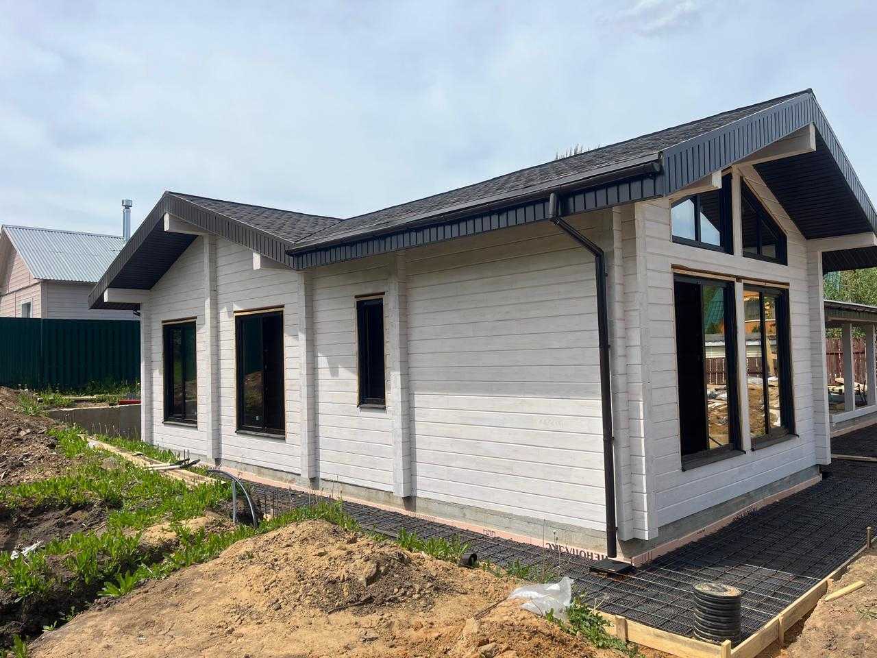 Строительные работы выполнены в полном объеме, за исключением дополнительных услуг (электрика, сан. техника, разводка в кухне и сан. узлах, отопление, разводка батарей по всему дому, электрокотел, бойлер, антифриз).