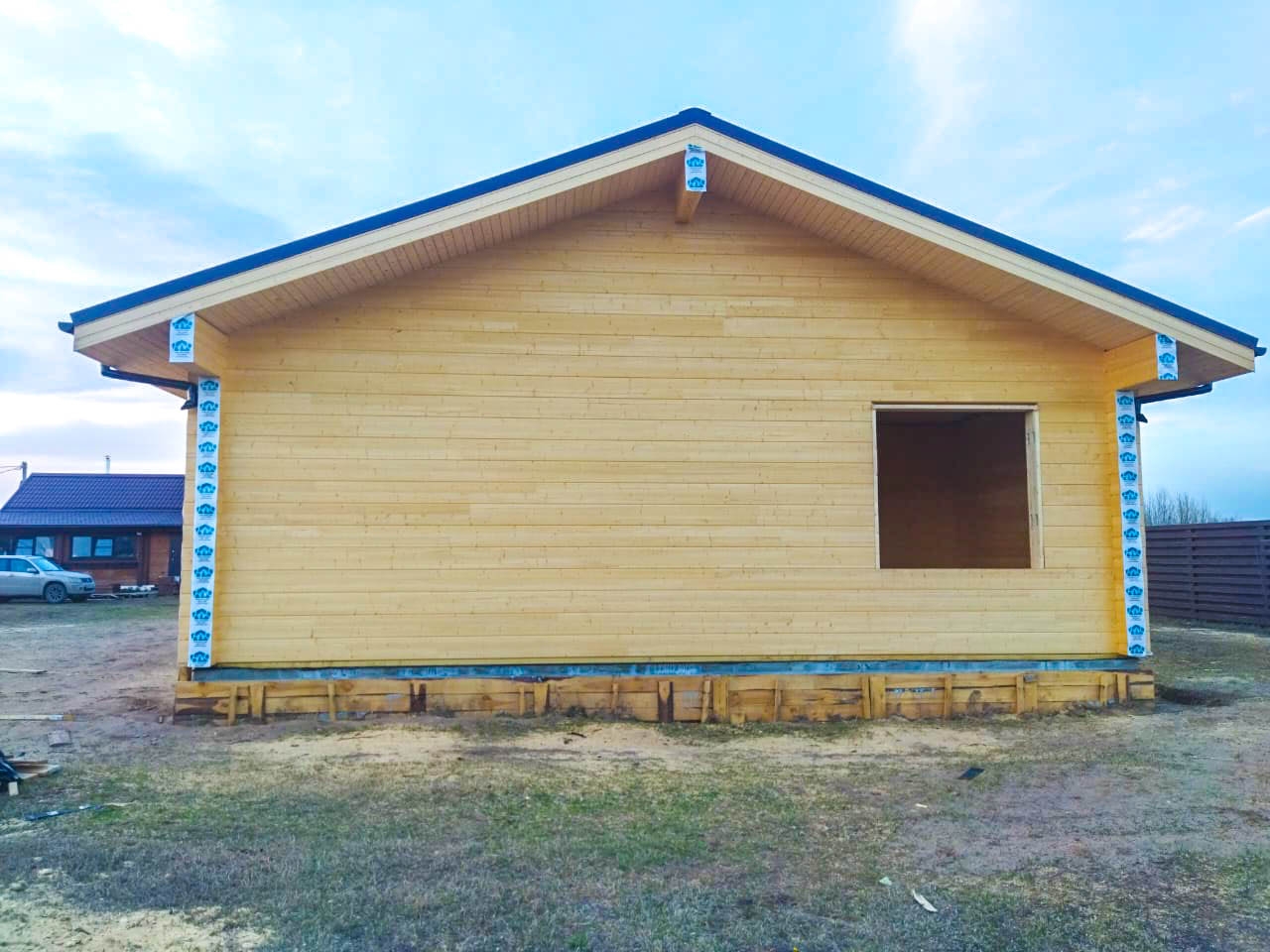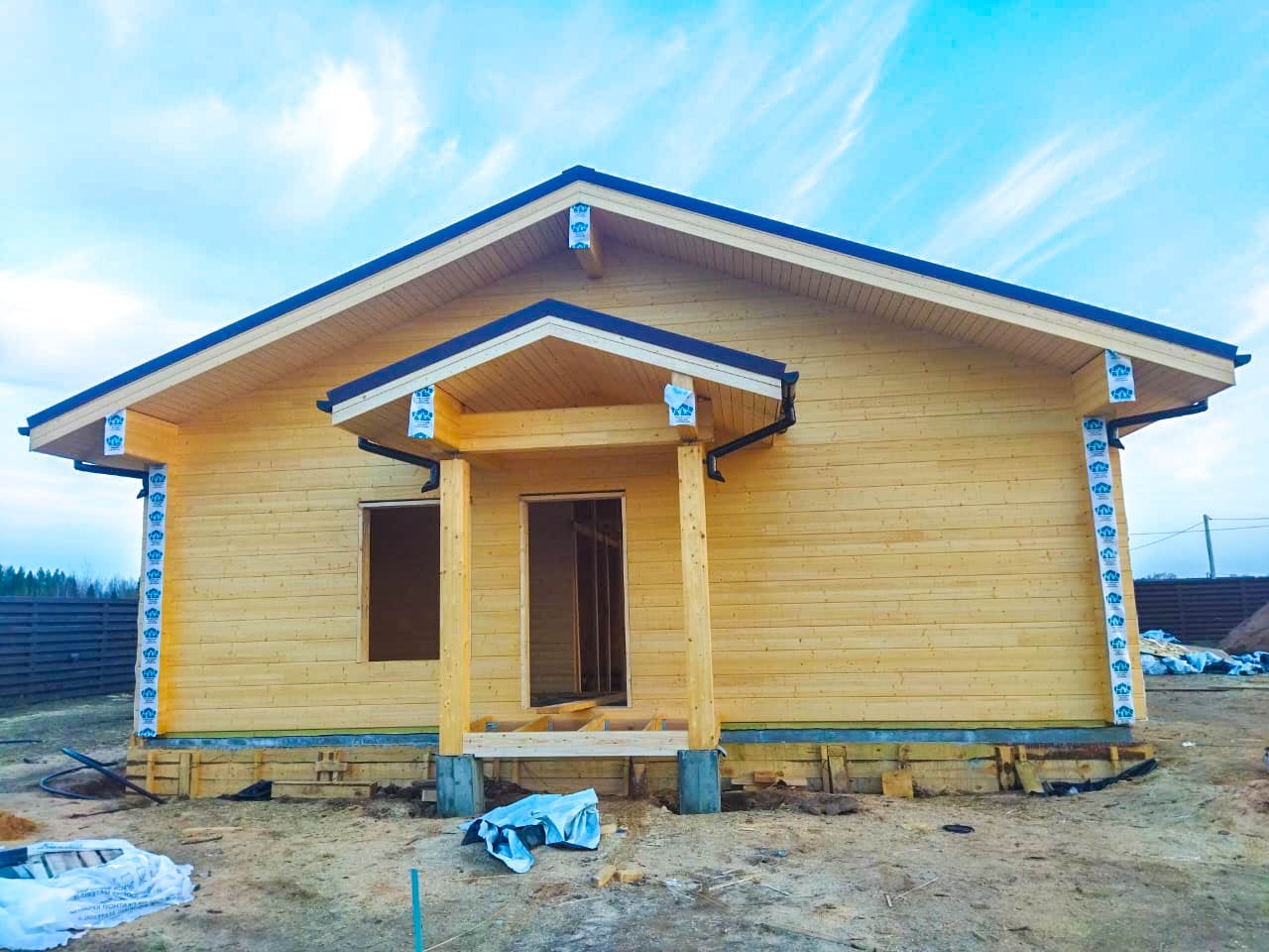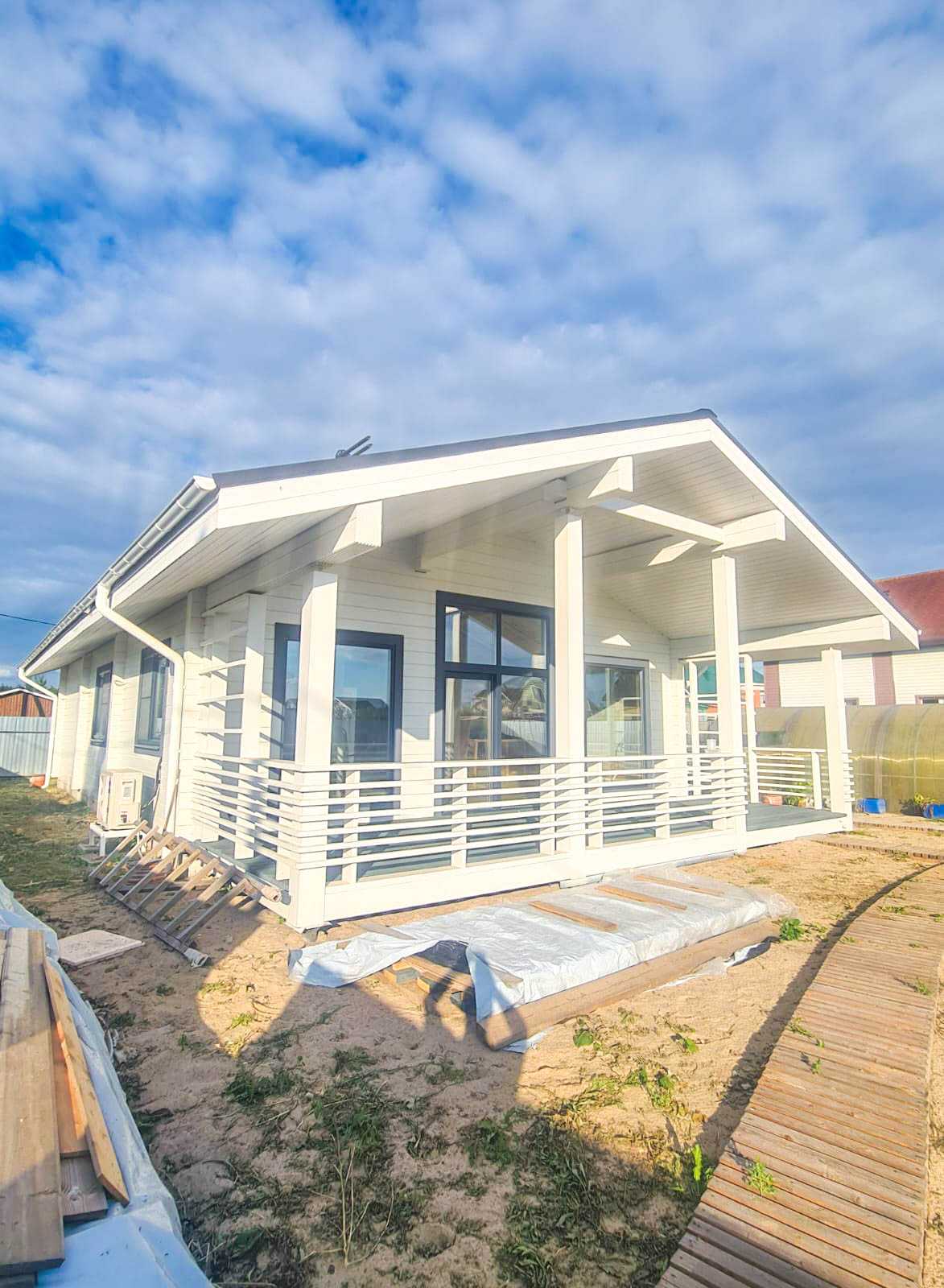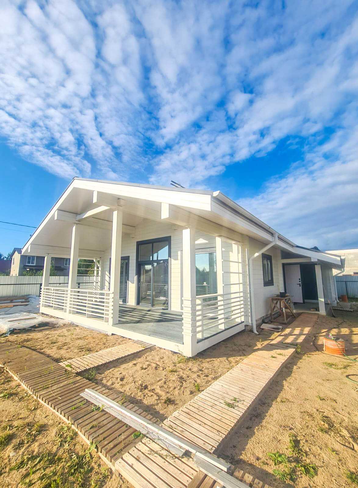 Строительные работы выполнены в полном объеме, за исключением дополнительных услуг (электрика, сан. техника, разводка в кухне и сан. узлах, отопление, разводка батарей по всему дому, электрокотел, бойлер, антифриз).