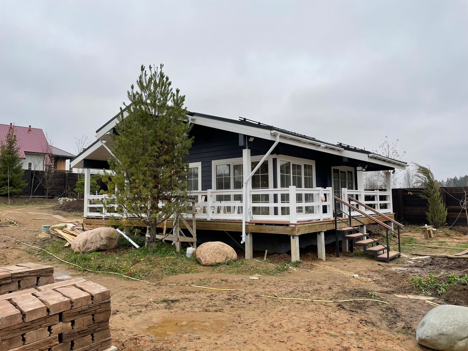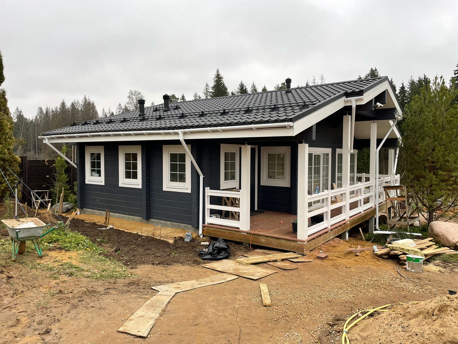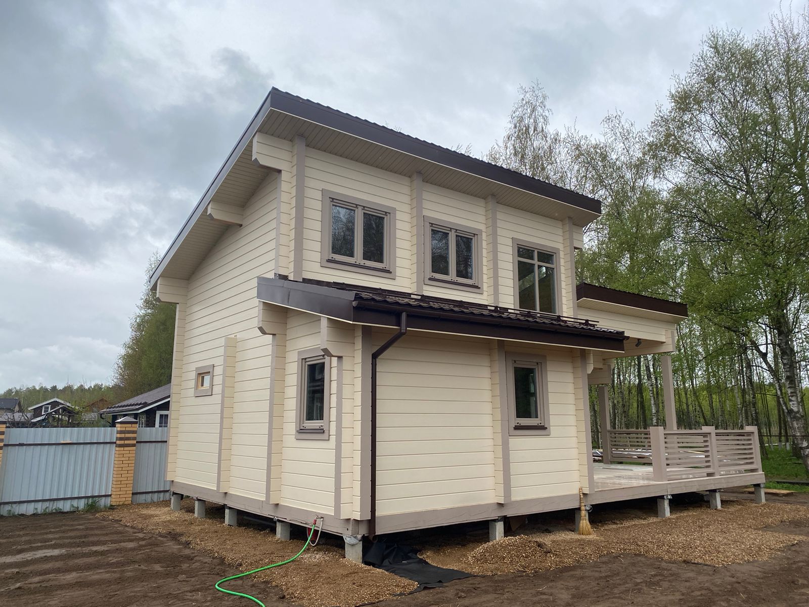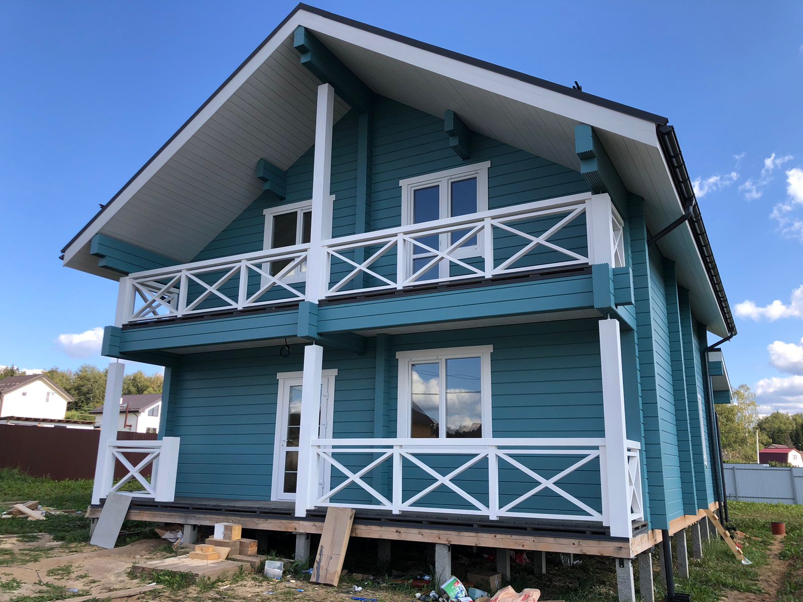 Строительные работы выполнены в полном объеме, за исключением дополнительных услуг (электрика, сан. техника, разводка в кухне и сан. узлах, отопление, разводка батарей по всему дому, электрокотел, бойлер, антифриз).